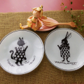 フォリアージュアニマルのガラスプレート、キャット&ラビットイラスト