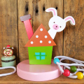 屋根からピョコン!と可愛いうさぎのお顔が飛び出した、輪投げができる木製の玩具です。