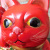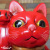 右手を上げていて、レトロな風合いが素敵な赤色の招き猫です。