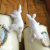 身体の表面が細かい毛で覆われているような手触りの白うさぎの置物です。
