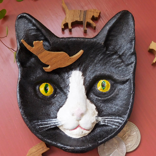 DULTON ダルトン アイアントレイ キャット ネコ フェイストレイ トレー 小物入れ 黒白猫 お皿 インテリア雑貨