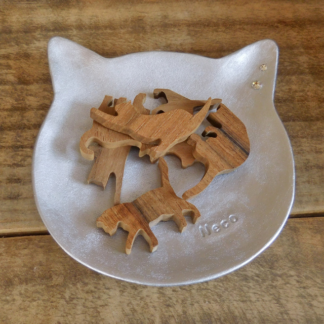 T'S COLLECTION ネコ フェイストレー ラインストーン付き トレイ 小物入れ ネコモチーフ 日本製